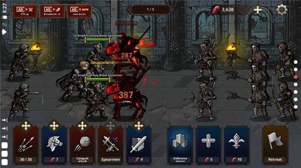 游戏采用独特的暗黑地牢美术风格,场景设计充满哥特式恐怖元素,为战斗增添了更多紧张感和视觉冲击力。多支部队在地牢中的公平竞技玩法考验玩家的微操能力,需要精准把握出击时机才能克敌制胜。四位英雄角色设计各具特色,其中两位英雄拥有改变战局的独特技能,合理运用这些技能是通关高难度关卡的关键。