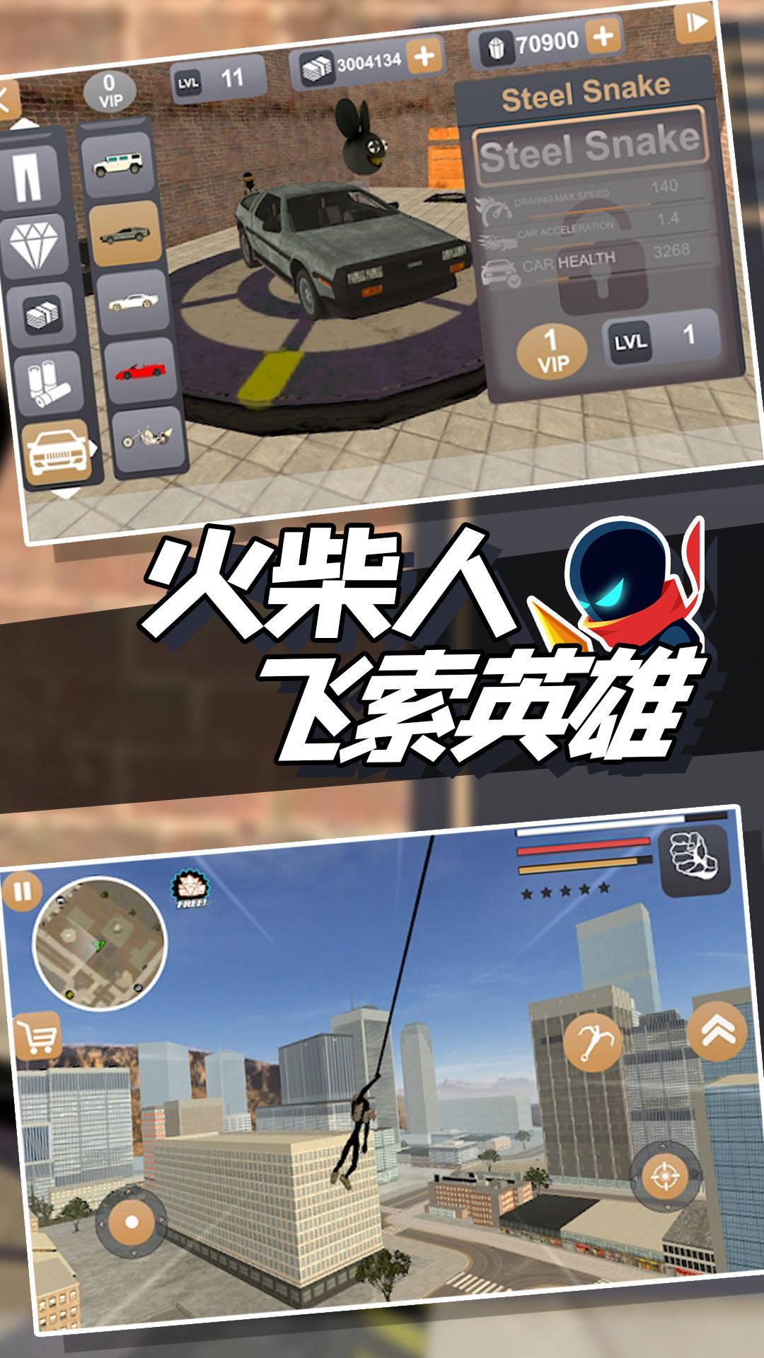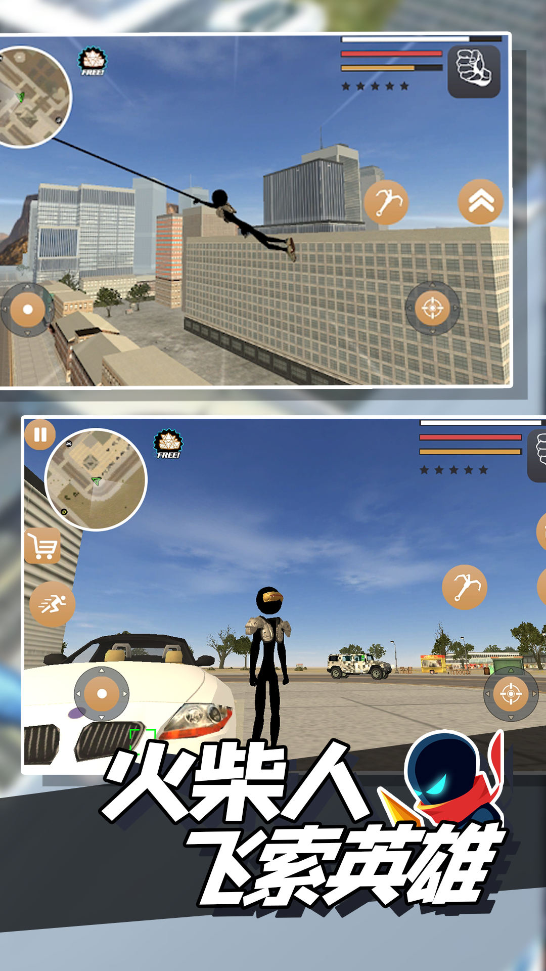 《火柴人飞索英雄》是一款充满动作与冒险元素的火柴人题材游戏,玩家将化身城市守护者,操控灵活的火柴人英雄在摩天大楼间飞檐走壁。通过使用高科技绳索装备,你可以自由穿梭于城市各个角落,与犯罪集团展开激烈对决。游戏提供丰富的武器库和炫酷载具系统,从激光枪到超级跑车应有尽有。每个任务都充满挑战性,需要玩家运用策略和技巧来维护城市治安,体验当超级英雄的快感。