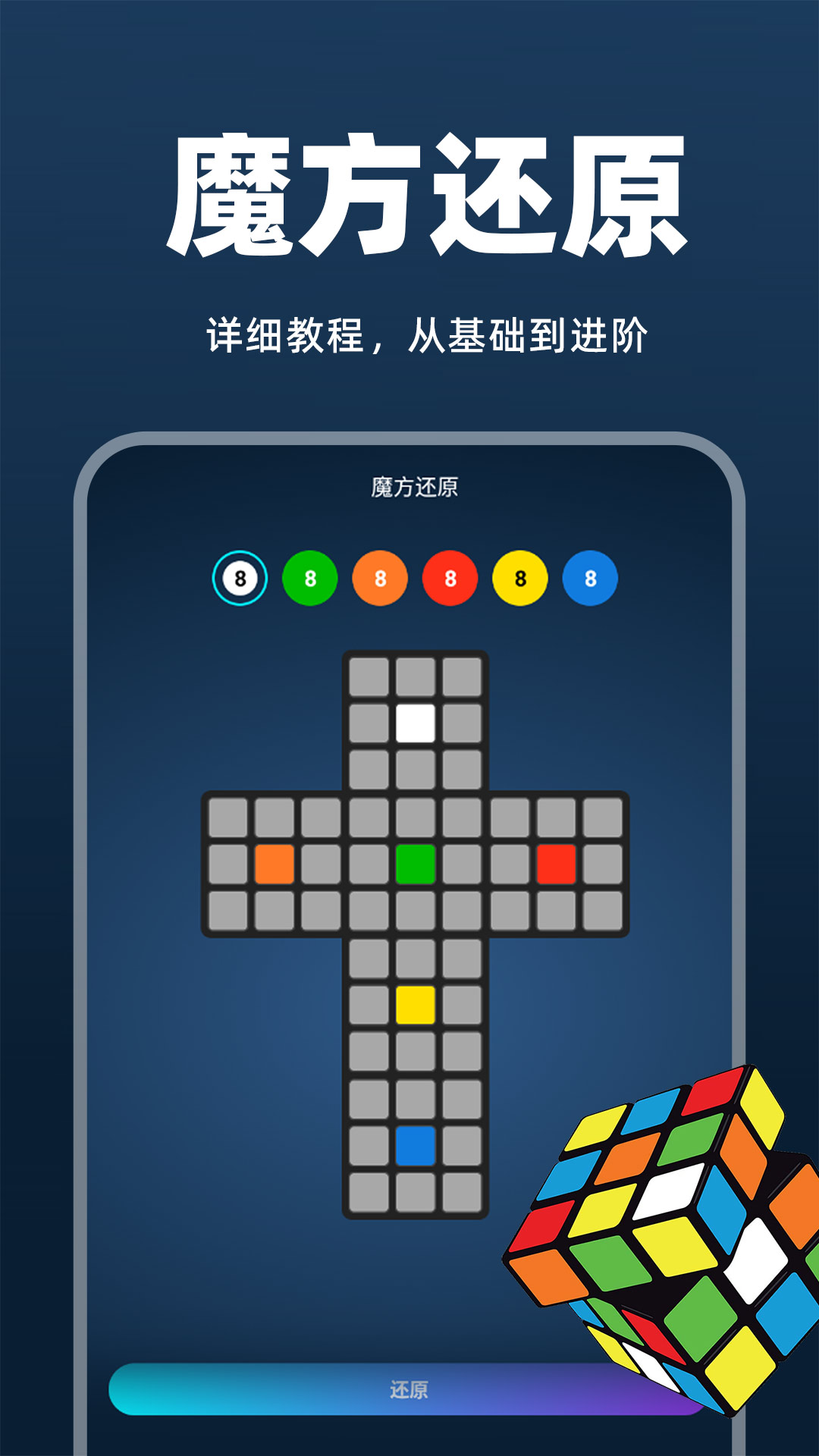 魔方还原教程趣味解锁是一款专为魔方爱好者设计的实用教程软件,旨在帮助用户轻松掌握魔方还原技巧。无论是初学者还是进阶玩家,都能通过这款软件找到适合自己的学习内容。软件提供了详细的视频教程、分步骤的文字讲解以及互动练习功能,让用户在趣味中快速提升魔方还原能力。