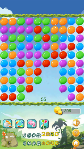 获得高分有2条途径,一是通过积累多个气球一起消除来获得高分。二是是获得最后的奖励,最后剩下的气球越少,得到的奖励越多,如果一个也不剩的话,最后能获得1000分的奖励,这1000的奖励是非常多的,是得高分的最重要保证。建议玩家优先消除底部气球,创造连锁消除机会,同时注意保留特殊道具应对紧急情况。