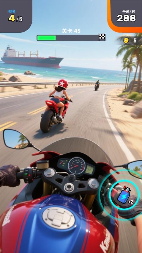 游戏采用直观的触控操作方式,只需简单滑动屏幕即可精准控制摩托行驶方向。在极速狂飙的过程中,玩家需要不断超越对手,最终夺取冠军宝座并获得丰厚奖励。游戏支持好友对战功能,玩家可以邀请好友组队进行特殊对局,展开精彩刺激的较量。独特的节奏玩法模式要求玩家跟随音乐节拍控制车辆躲避障碍,任何失误都可能导致挑战失败。赛道中还会随机出现各种功能道具,合理利用这些道具可以帮助玩家实现加速冲刺或获得特殊能力,大大提升游戏乐趣。游戏画面精美绝伦,不同主题的赛道场景带来多样化的视觉体验,让玩家在享受竞速快感的同时也能欣赏到令人惊叹的游戏画面。