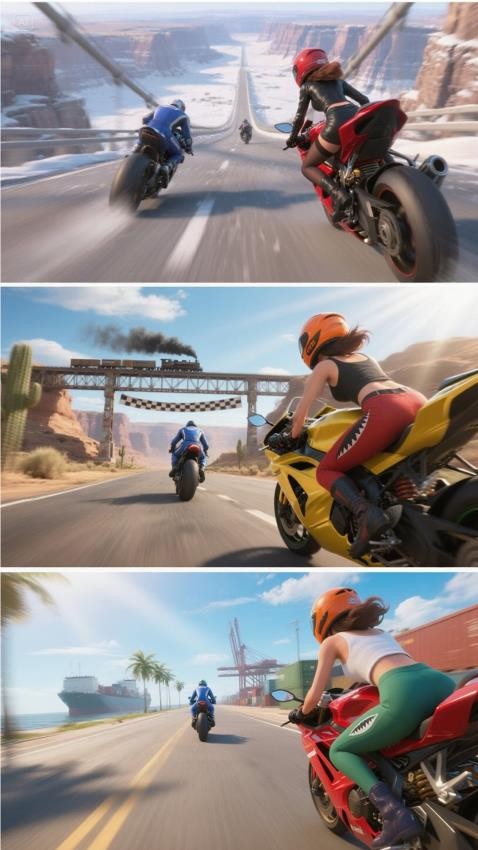 游戏操作简单易上手,只需通过手指滑动就能精准控制摩托行驶。玩家需要时刻关注摩托状态和对手位置,制定最佳行驶策略。游戏场景转换流畅自然,宝石收集点与音乐节奏完美契合,带来独特的卡点快感。庞大的赛道地图可供自由探索,玩家需要克服重重困难完成挑战,赢取丰厚奖励。游戏还支持自定义摩托外观,玩家可以根据个人喜好打造专属座驾。