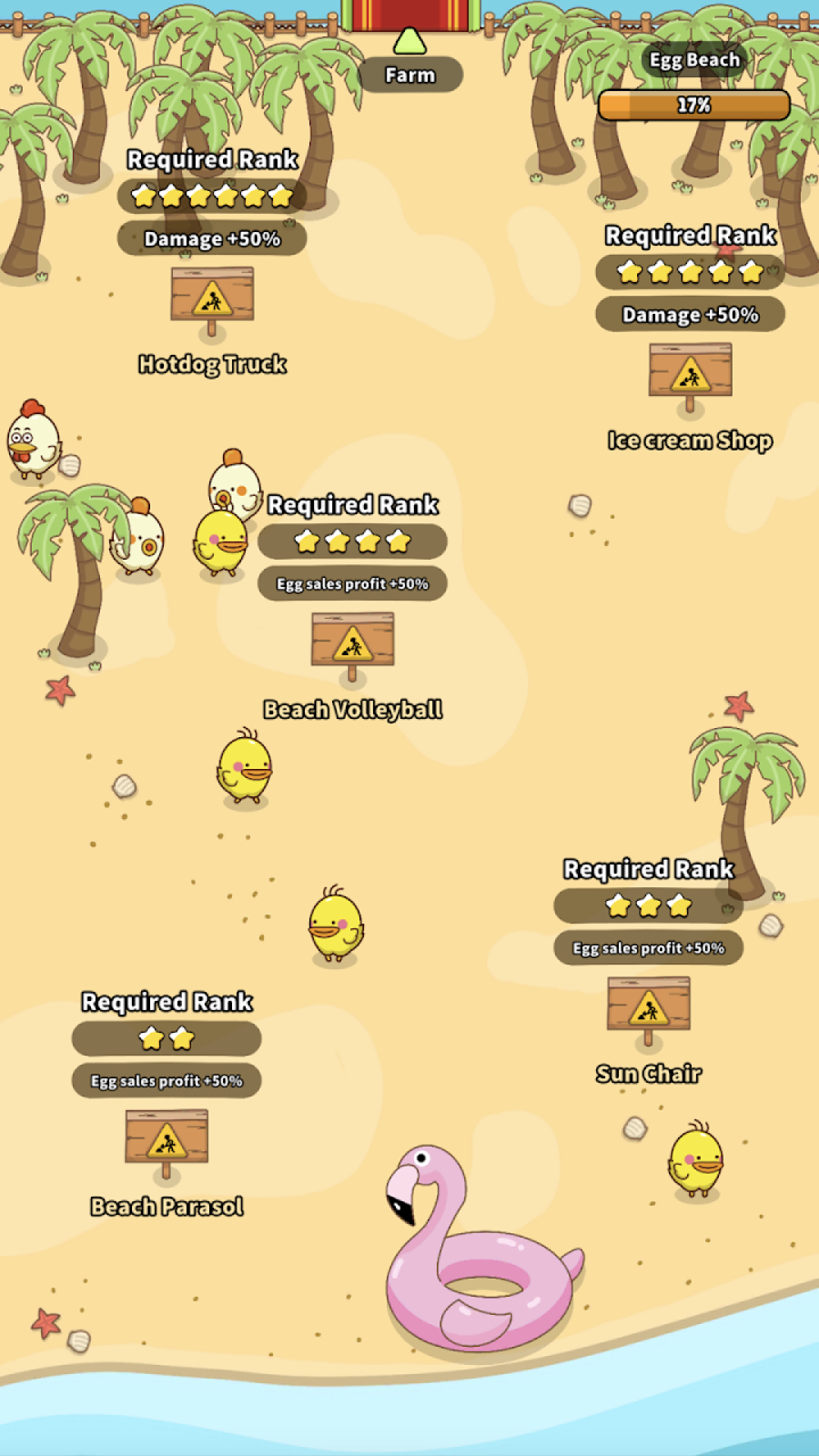 游戏采用自给自足的经营模式,玩家可以种植各种农作物来满足鸡群的饮食需求。商店中提供多种实用道具,能够加速鸡群成长、提高产蛋效率。游戏的整体节奏轻松愉快,在享受养殖乐趣的同时,还能自由定制小鸡的外观造型。鸡蛋作为主要产出物,不仅能为玩家带来可观的经济收益,其产量还会随着农场等级的提升而大幅增加,让玩家体验到实实在在的成长感。