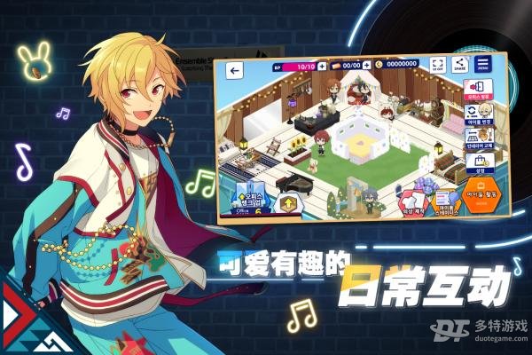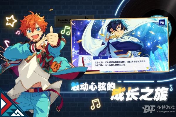 游戏中采用细腻精致的二次元画风,将每位偶像都刻画得栩栩如生,帅气逼人。玩家可以为偶像们打造专属造型,从发型、妆容到服装配饰都能自由搭配,数百种精美的服装单品和套装任你选择。无论是华丽的舞台装还是日常休闲服,都能完美展现偶像们的独特魅力。通过参加各种活动和演出,让偶像们获得更多曝光机会,逐步成长为闪耀的明星。