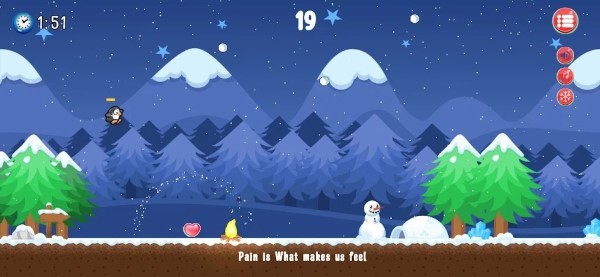 游戏提供了丰富的自定义选项,包括启用或禁用降雪效果,满足不同玩家的视觉偏好。主角马西是一只呆萌可爱的小企鹅,在寒冷的冰雪世界中显得格外温暖。游戏采用简单直观的操作方式,让玩家轻松上手。界面设计简洁大方,2265种不同的强化道具为游戏增添了更多趣味性。最令人惊喜的是,游戏没有任何强制性广告,让玩家可以享受无干扰的游戏体验。这些特点共同打造出一个令人沉浸的冰雪冒险世界。