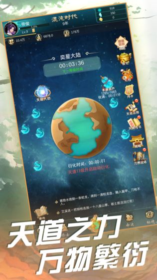 一反往常放置修仙游戏设定,玩家成为天道,掌握天下,做一个没得感情的天道。这种独特的视角转换打破了传统修仙游戏的框架,让玩家从更高维度体验修真世界。你可以冷眼旁观众生挣扎,也可以亲自下场干预命运,这种自由度是同类游戏少有的。
