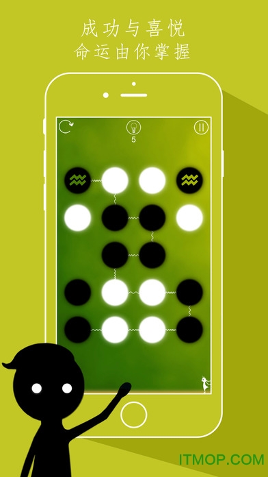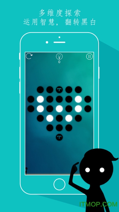 游戏中的核心元素是黑白两种颜色的圆圈,它们分别代表着故事中的男女主角。黑色圆圈象征着生活在黑暗中的男孩,白色圆圈则代表着为光明而生的女孩。游戏开始时,玩家需要从带有月亮标记的圆圈出发,通过上下左右的连接来翻转其他圆圈,最终使所有圆圈变为同一种颜色,象征着两个世界的统一。