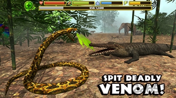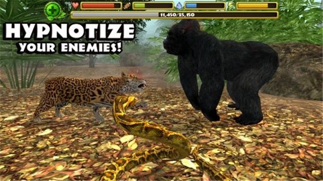 除了基础的缠绕攻击外,随着等级提升可解锁毒液喷射(对灵长类特别有效)、死亡翻滚(对付鳄鱼必备)、伪装拟态(躲避大型猛兽)等12种独特技能。特别注意:不同猎物需要采用不同战术,误判形势可能导致反杀!