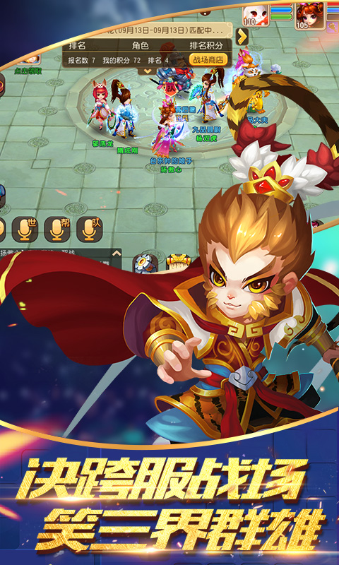 3D卡通的Q版形象,各个西游角色以全新的二头身面貌登场,充满趣味而又新鲜十足;角色动作流畅自然,战斗特效华丽炫目,为玩家带来视觉上的双重享受。