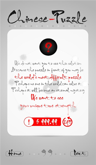 难倒世界的中国难题,或许世上无人能解全关。这款游戏将中国传统智力游戏的精华与现代设计理念相结合,创造出令人着迷的挑战体验。极简中国风创新玩法,中华智慧结晶太极精髓。游戏界面采用水墨风格设计,配以悠扬的古琴背景音乐,营造出浓厚的文化氛围。GMGC开发者大赛入围作品,证明了其在游戏创新性和文化传承方面的卓越表现。