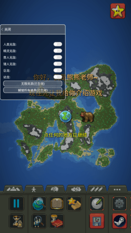 游戏操作简单易上手,通过点击、双击、单指拖拽、双指滑动或转动等直观的手势操作,就能完成塑造世界、发展文明的所有任务。游戏界面设计人性化,各项功能一目了然,即使是初次接触这类游戏的玩家也能快速掌握游戏要领。