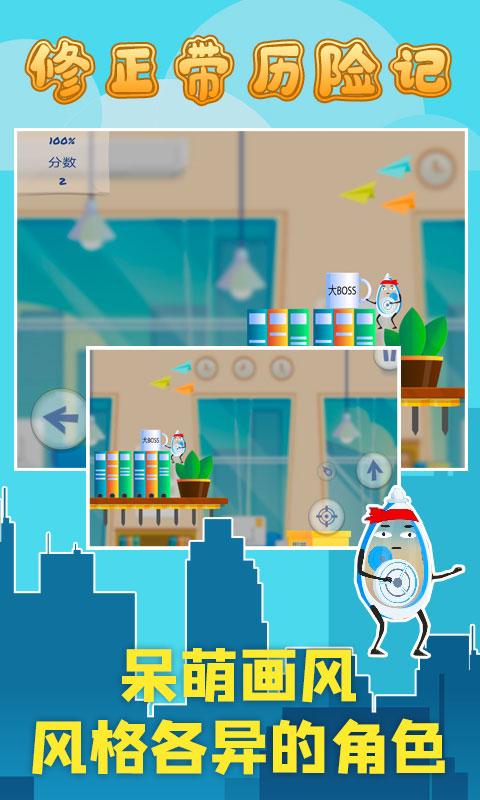 《修正带历险记》是一款充满欢乐与挑战的休闲益智游戏,以萌趣搞笑的画风带你进入文具的奇幻世界。游戏中你将扮演一位勇敢的冒险者,帮助可爱的修正带逃离枯燥乏味的办公室生活。面对重重障碍和机关陷阱,你需要灵活操作、巧妙利用场景道具,带领小修正带突破重重难关。沿途收集闪闪发亮的回形针不仅能获得高分,还能解锁更多有趣的内容。丰富多样的关卡设计、呆萌可爱的角色造型,加上轻松欢快的背景音乐,让这场办公室大逃亡充满无限乐趣。