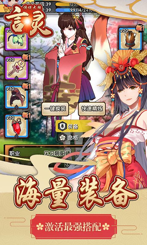 《言灵》是一款唯美和风风格的式神卡牌RPG手游,以精致的画面和丰富的玩法吸引了众多玩家。在游戏中,玩家将化身为一名强大的阴阳师,通过收集和培养各式各样的式神卡牌,解锁独特的技能与装备,并运用策略搭配羁绊阵容,挑战充满神秘色彩的次元和风世界。此外,游戏还提供了与式神亲密互动的玩法,让玩家能够更深入地体验式神的魅力。