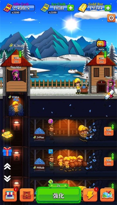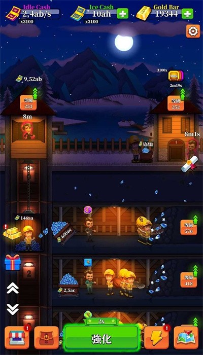游戏的核心玩法是建立并发展你的矿业帝国。首先需要创建矿井,这是整个采矿事业的基础。游戏提供了多种有趣的玩法模式,每种模式都能带来不同的游戏体验。你可以收集海量的装备道具,通过升级让它们变得更加强大。不断招募新的矿井工人,优化你的采矿团队。无论是矿井设施还是矿工技能都可以进行升级,升级后你将有机会开采到更加稀有的矿脉资源,获得更高的收益。