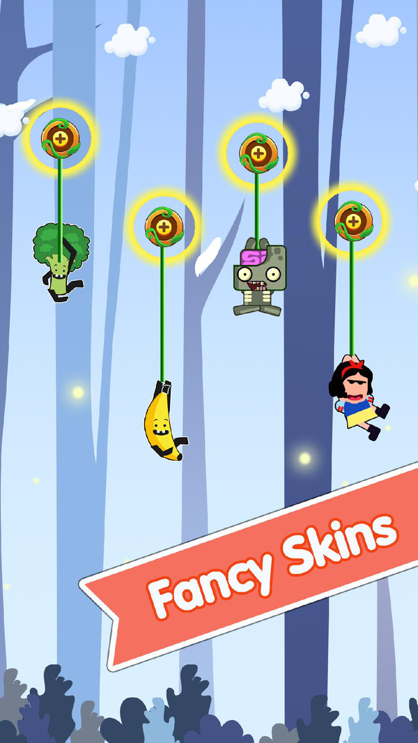 只需轻触屏幕就能控制小猴子跳跃移动,简单直观的操作让所有玩家都能快速上手。游戏中设置了滑绳、飞箭等多样化的障碍物,需要玩家灵活应对。除了主角小猴子外,还可以解锁白雪公主、可爱僵尸等特殊角色,每个角色都拥有独特的造型和动作。通过点击屏幕就能开启冒险,丰富的角色选择让游戏充满新鲜感。