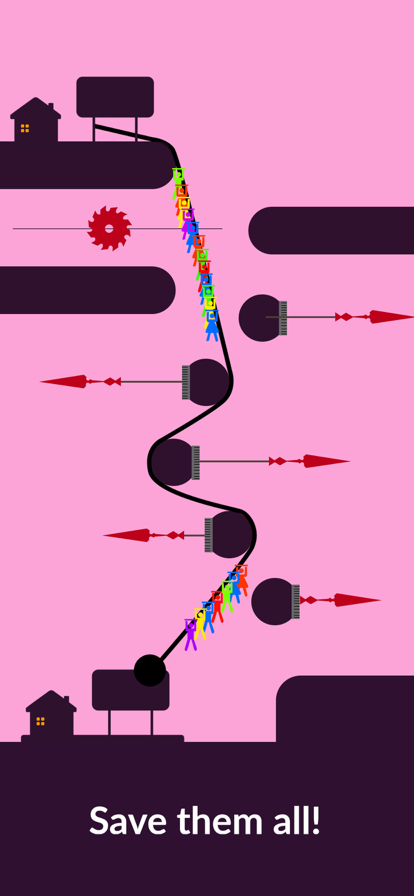 游戏以营救被困在危险山谷中的朋友为主要目标,玩家只需用手指在屏幕上绘制连接线,就能创造出救援通道。当成功连接两个房屋后,点击屏幕即可让乘客开始滑行。值得注意的是,玩家在屏幕上停留的时间越长,同时滑行的乘客数量就会越多。游戏采用了创新的绳索物理系统,玩家可以自由调整绳索的走向和形状,甚至可以在障碍物周围绘制迂回路线。这种基于鞭打绳索原理的独特玩法,为游戏增添了更多策略性和可玩性。