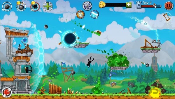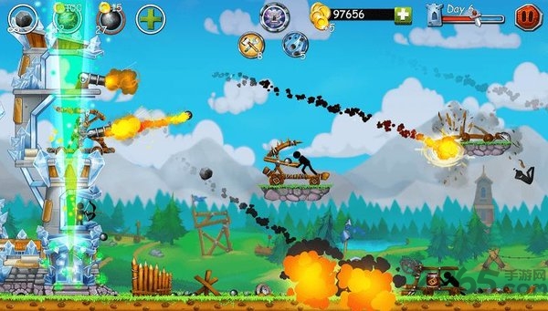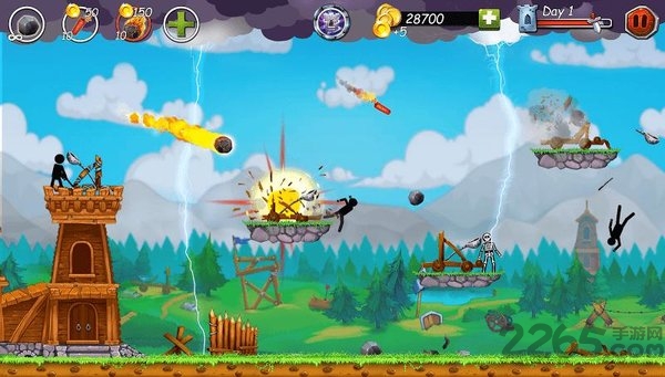 游戏采用简洁明快的火柴人画风,独特的3D渲染技术让画面表现力十足。你将操控一个巨型弹弓,帮助火柴人抵御敌人的进攻。除了投石攻击外,还可以在城堡前布置各种防御设施,如路障、地雷等,大幅提升防御能力。游戏中的物理效果逼真,投石轨迹会受风力、重力等因素影响,考验你的预判能力。随着游戏进行,你可以解锁更多强力装备和护甲,让你的火柴人英雄变得更加强大。游戏还设有多种特殊关卡和挑战模式,保证游戏体验始终充满新鲜感。