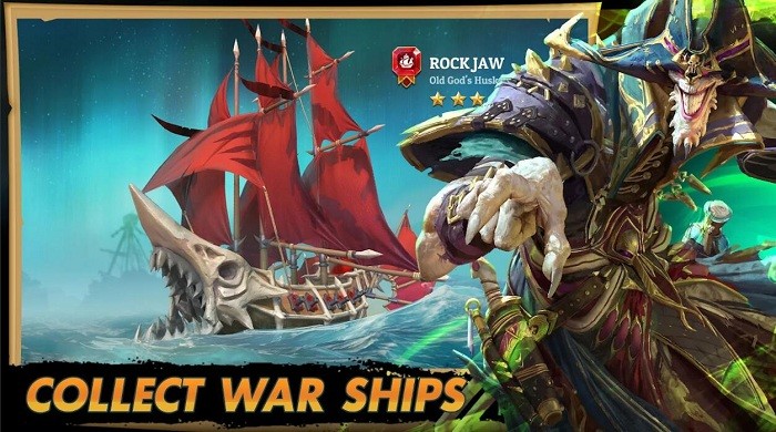 召唤数十艘史诗级战舰,这些战舰将作为您在战场上的王牌。每艘传奇战舰都配备专属技能树,比如拉尼娜号能召唤暴风雨,岩颚号拥有钢铁冲角,守护者可以展开能量护盾。通过收集古代船首像还能激活隐藏属性。