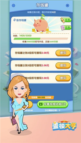 《盖楼大亨》提供了极高的游戏自由度,玩家可以随时上线经营自己的房地产事业。游戏完美融合了经典的建筑玩法与现代经营策略,让你既能享受建造的乐趣,又能体验商业竞争的刺激。在这里,你可以自由规划城市天际线,打造风格各异的建筑群,从简约现代到古典优雅,应有尽有。通过观看视频还能获得现金红包奖励,为你的商业版图扩张添砖加瓦。每天都有新的挑战任务等待完成,考验你的商业头脑和应变能力。如果你渴望体验成为地产大亨的感觉,这款游戏绝对不容错过。