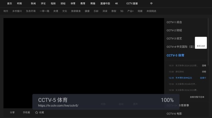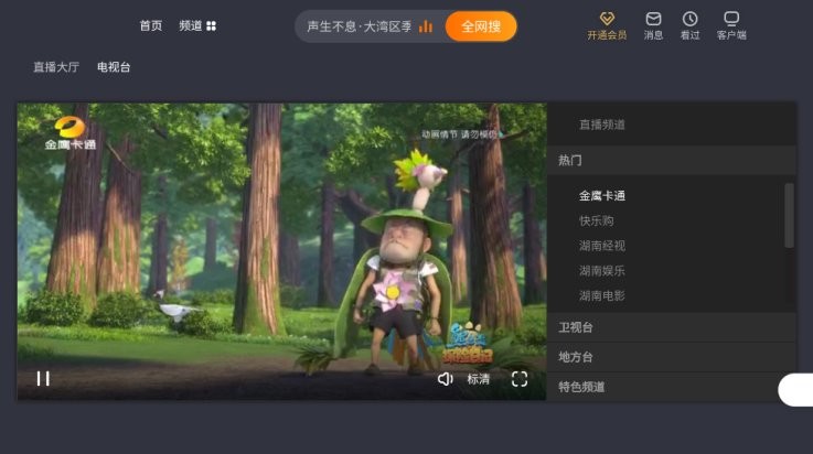 安装广电电视TV版后,打开应用即可自动进入直播界面