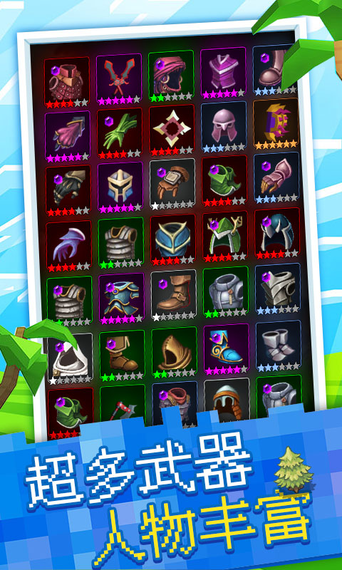 游戏采用经典的像素美术风格,战斗特效却十分华丽,在保留复古韵味的同时带来现代游戏的视觉享受;游戏拥有丰富的英雄角色,每个英雄都有独特的战斗风格和成长路线,需要通过游戏内专属金币解锁;战斗动画流畅自然,人物动作帅气逼真,打击感十足,为玩家带来酣畅淋漓的战斗体验。