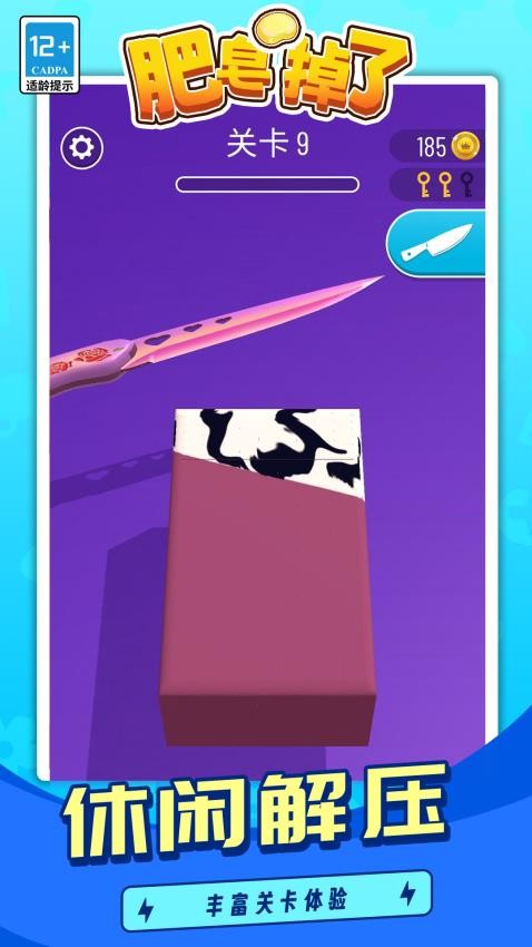 缤纷多彩的各式各样的肥皂,不同形状体验不同的切割的快乐。从水果造型到几何图案,每种肥皂都有独特的切割手感和得分机制。特殊材质的肥皂会带来意想不到的切割效果,如彩虹肥皂会随切割改变颜色。