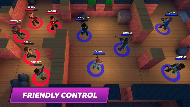 皇家战场,等你来战。《酷炸皇家战场》是一款极具刺激感的枪战射击类游戏,采用上帝视角设计,让玩家能够全方位掌控战场局势。游戏画面精致细腻,场景宏大开阔,玩家可以自由探索每一处角落,体验紧张刺激的枪战对决。游戏中提供了丰富多样的武器系统,从手枪到狙击枪,从手雷到火箭筒,应有尽有。玩家需要灵活运用走位技巧,合理利用地形优势,在枪林弹雨中生存下来。记住,永远不要小看任何一个敌人,他们可能随时给你致命一击。
