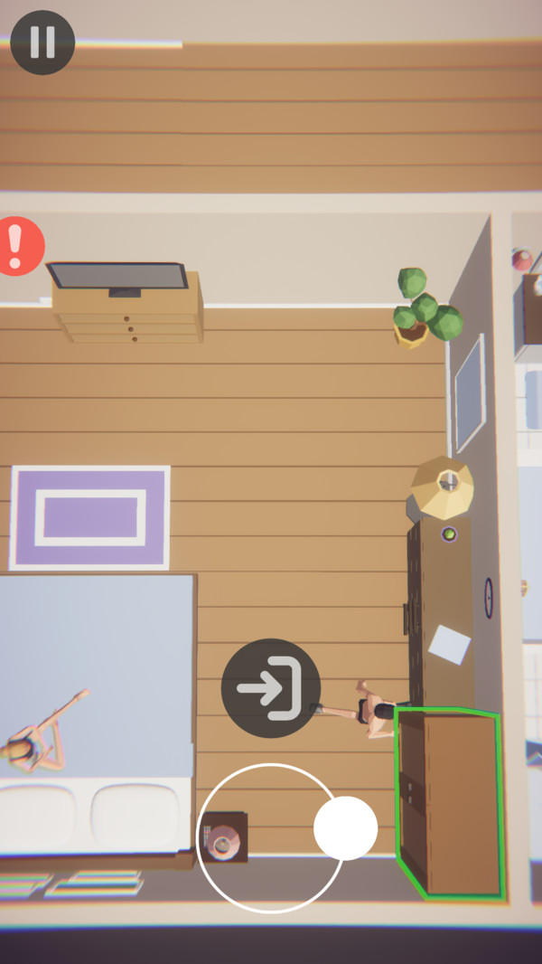 玩法十分简单,不要让回来的人发现你的存在,成为逃生大师,利用视觉盲点躲避。游戏特别加入了声音感知系统,玩家的每一个动作都可能产生声响,需要精准控制移动节奏,在保持隐蔽的同时快速转移位置。