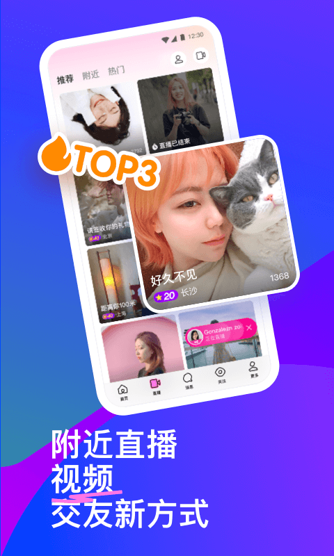 1、附近的动态/人/群组:多样展现自己,随时分享生活,找到身边有交集的人,加入周围感兴趣的群组,让社交更有个性。