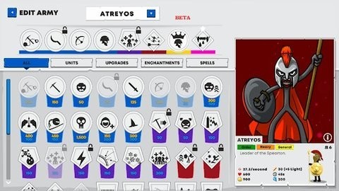 休闲策略游戏。玩家收集足够的金矿,组建自己的军团。根据军团的情况可以选择防守和进攻,通过摧毁敌方雕像,获得游戏胜利。
