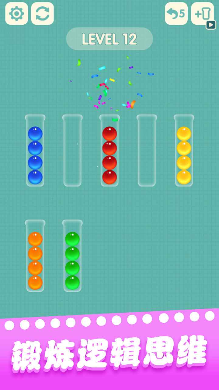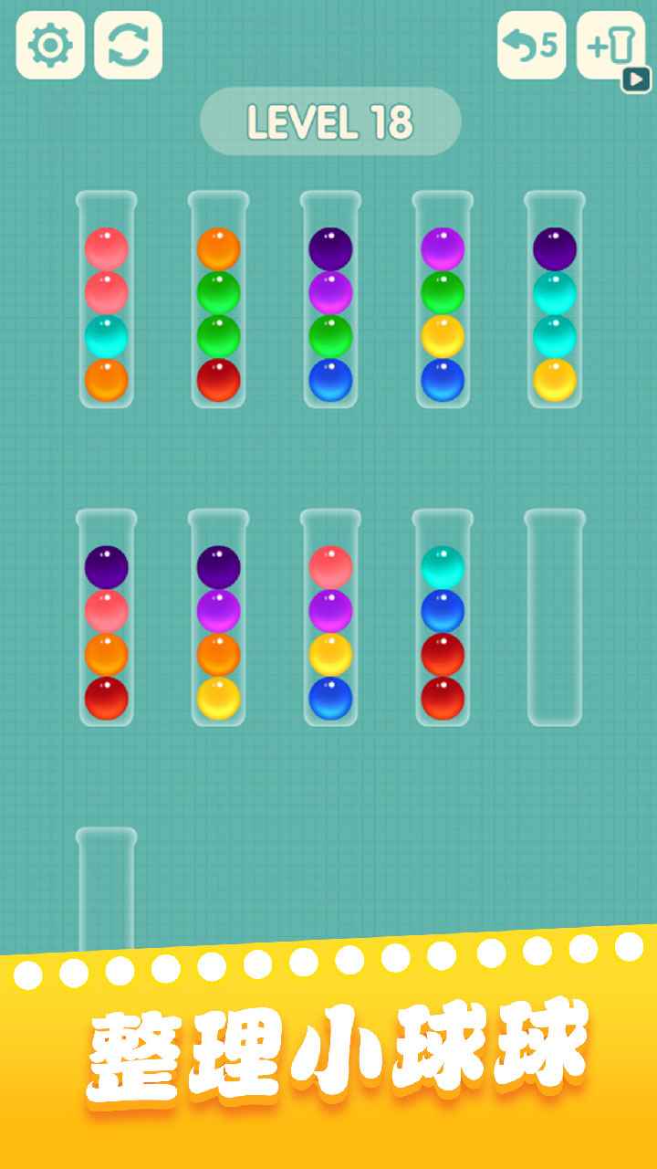 玩家将对球球世界里的彩色球球进行整理,将相同颜色的球整理到同一个瓶子里,使混乱的状态归为有序,呈现出最整洁舒适的状态。游戏包含数百个精心设计的关卡,每个关卡都经过反复测试确保难度曲线合理,既不会让新手感到挫败,又能给资深玩家带来足够的挑战性。