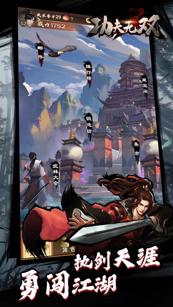 功夫无双是一款以武侠世界为背景的全新打宝玩法手机游戏,游戏完美还原了经典武侠小说中的各种招式与场景,让玩家能够亲身体验成为一代大侠的乐趣。游戏拥有超多的武功秘籍系统,玩家可以自由搭配不同的武器和装备,创造出属于自己的独特战斗风格。游戏最大的特色在于没有完美无敌的招式,每个招式都有其破解方式,让战斗充满策略性和趣味性。