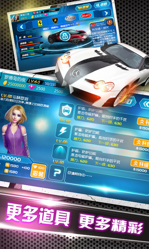 3、每个车都有自己的属性,当他能力越强的时候,解除的赛道也会更高级一些;