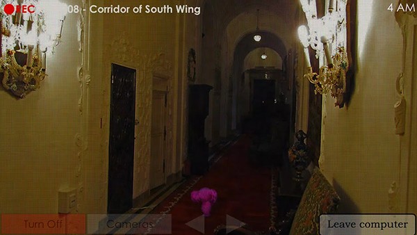画面风格极具特色,采用写实与卡通相结合的表现手法。空无一人的庄园场景细节丰富,光影效果逼真,共同营造出令人毛骨悚然的游戏氛围。