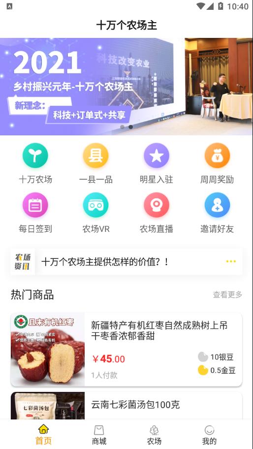 十万个农场主app是一款专注于农产品线上购物的手机应用,致力于为用户提供便捷、高效的购物体验。这款软件汇集了全国各地优质的农产品资源,种类丰富多样,从新鲜蔬果到特色干货应有尽有,满足不同用户的购物需求。用户可以通过简单的操作,轻松浏览和选购心仪的商品,享受一站式购物服务。