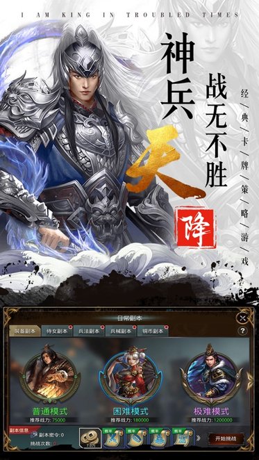 游戏以策略致胜,运筹帷幄掌控全局,统帅武将军队,指尖策略到发挥极致;海量丰富兵种兵营系统等你来训练指挥,在这个热血的战场纷争中谱写你专属的王者传奇。