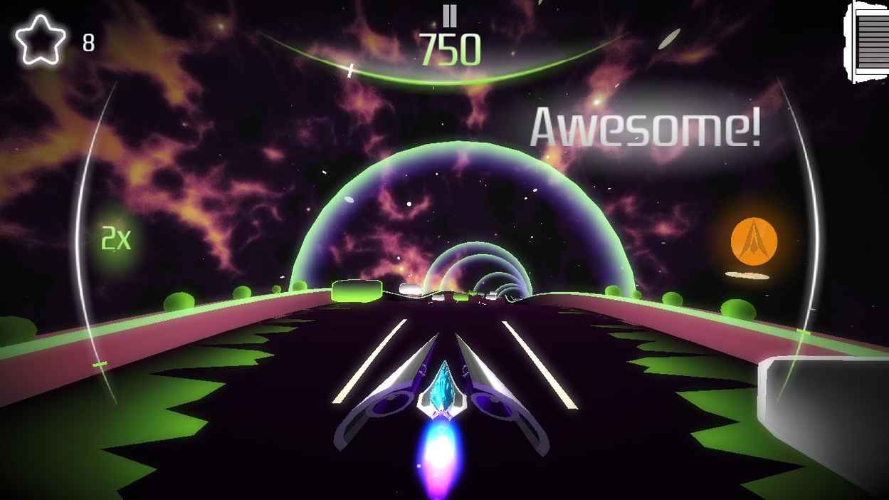 《音乐宇宙Musiverse》重新定义了音乐游戏的边界。不同于传统音游的固定曲库,它通过先进的音频分析技术,实时将任意歌曲的节奏、旋律转化为动态游戏元素。当播放快节奏电子乐时,赛道会布满高频闪烁的障碍;而舒缓的钢琴曲则会生成优雅流畅的飞行轨迹。游戏提供三种操控模式(重力感应、触屏滑动、虚拟按键),并配备20种可解锁的飞行器皮肤,每款都带有专属粒子特效。