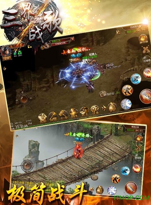三界战歌携手昔日兄弟一起决战沙城之巅,一起感受热血无双的传奇战斗!绝版神兵降世,助力战斗,超强战力,爽快PK竞技,轻松争霸全服!更有凶猛神兽,红名厮杀,无一对手,激情爆装,神装轻松得,谱写华丽传世战歌!