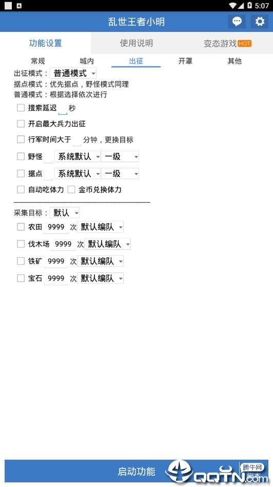 出征模式可以智能规划采集路线,玩家可自定义采集等级、队伍配置和采集次数等参数
