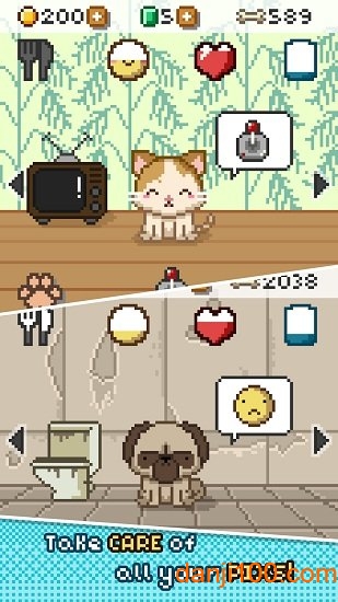 像素风格的模拟养成游戏,游戏操作简单玩家上手快。开发者特别优化了触控操作,所有互动都只需简单的点击和滑动即可完成,让玩家能更专注于与宠物们的互动体验。