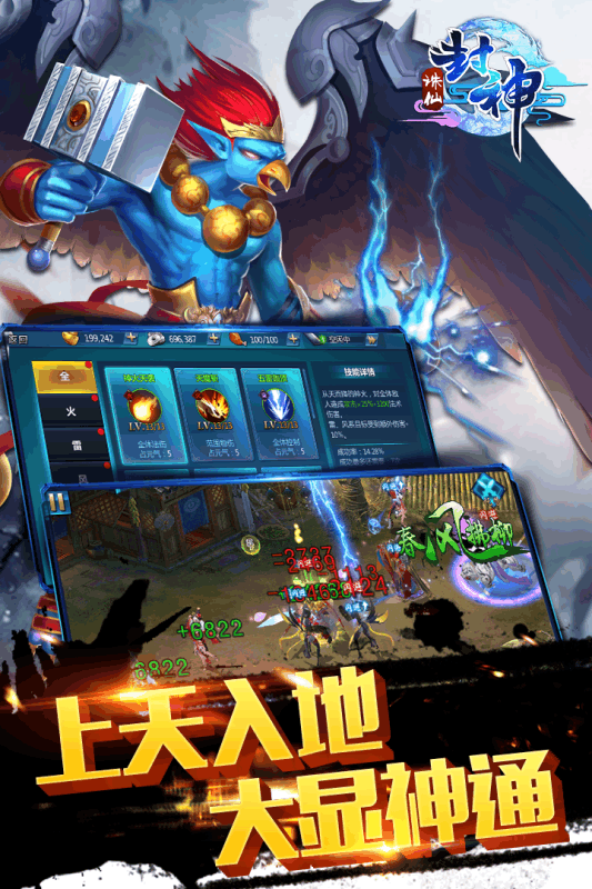 游戏以宏大的封神故事为背景,设计了丰富多样的征战内容。玩家将面对多策略的怪物守关挑战,每个关卡都经过精心设计,考验玩家的战斗技巧和策略运用。游戏重现了众多经典场景,如哪吒闹海、冰冻岐山等封神名场面,让玩家在战斗中重温原著经典情节。