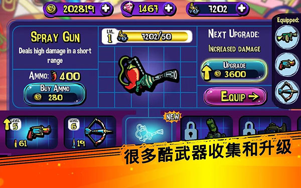 每次成功防御都会获得经验值和道具奖励,玩家可以在商店中解锁新武器或升级现有装备。游戏特别设计了多种特殊道具,比如能造成大范围伤害的炸弹、可以冻结敌人的霜冰器,以及能瞬间清屏的超级武器。合理使用这些道具往往能在危急时刻扭转战局。