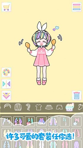 1、它是柔和的女孩自由换装的扮演游戏,以柔和的色彩和背景装饰可爱的女孩;