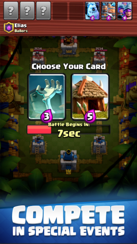 游戏最大的亮点在于其全球同服的实时对战系统,玩家可以与来自世界各地的千万玩家同台竞技,通过击败对手赢取奖杯,体验真正的全球对决。丰富的卡牌收集系统让玩家能够不断解锁强大的新卡牌,并通过资源积累升级已有卡牌,打造独一无二的强力卡组。摧毁敌方皇家塔赢取皇冠的设定,为每场对战增添了额外的目标与乐趣,皇冠宝箱中更藏着各种惊喜奖励。游戏还巧妙地将《部落冲突》中的经典元素融入卡牌系统,让老玩家倍感亲切,新玩家也能体验到丰富的策略深度。