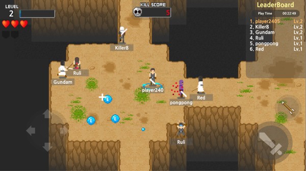 游戏一开始就将玩家置于紧张刺激的生存环境中,没有任何冗长的剧情铺垫,玩家会突然出现在随机位置的地图上,唯一的目标就是活下去。在这个弱肉强食的战场上,所有其他玩家都是你的敌人,你必须运用各种战斗技巧将他们一一击败。游戏的操作系统经过精心设计,简单易上手但又不失深度,玩家可以通过虚拟摇杆进行灵活移动,使用长剑进行近战攻击,还能切换弓箭进行远程射击,多种战斗方式让每场对决都充满变数。