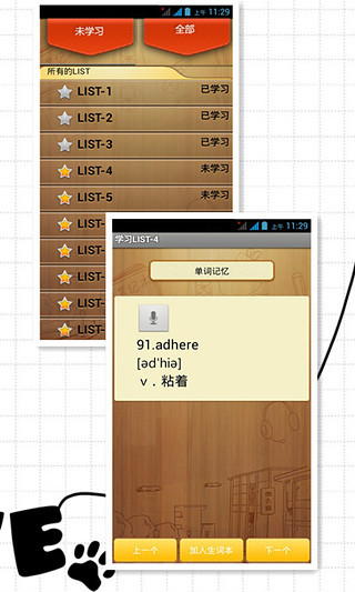 学习功能:采用科学的分散学习法,将词汇分成合理的学习单元,每个单词都配有标准发音和详细释义,帮助用户建立正确的语音记忆。
