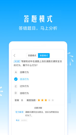v5.3.0更新内容:2020年全新考试试题正式上线,软件被多家知名驾校指定为官方学习工具。