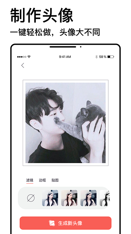 丰富滤镜、贴图、边框任你搭配,让头像更具艺术感