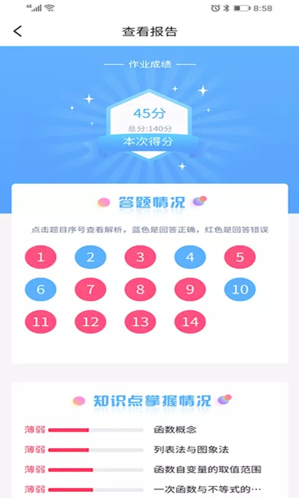 3、任学学生助手是一款给学生用的教辅软件,在这里可以完成你的各科目作业,而且批改起来也更加方便了,老师可以直接在这里查看学生的作业完成情况,帮助总结进步,分析图一目了然非常的清楚,每段时间还有学习报告可以查看,帮助提升学生成绩