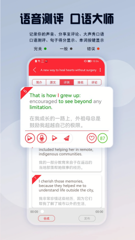 1、用户可以在线评测自己的口语能力,查看错误语句